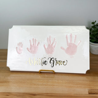 Clay Impressions are made by pressing your child's prints directly into the clay.