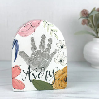 Petite Vases accommodate 1-2 children, up to 5yrs of age and are great for a bouquet of short stem flowers!  Print layouts depend on number and age of children, if more than one child is going on the piece there will be one handprint per child.