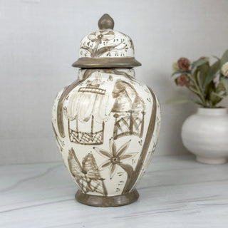 Ginger jars are the BEST. Looking for your new decor piece? You found it! Whether you're displaying this piece on the shelf or using it as a vase, this piece is good for any occasion.