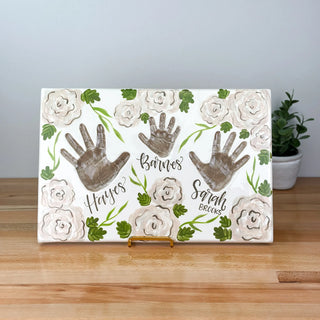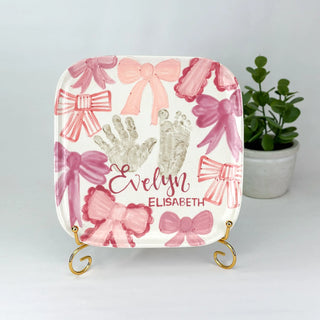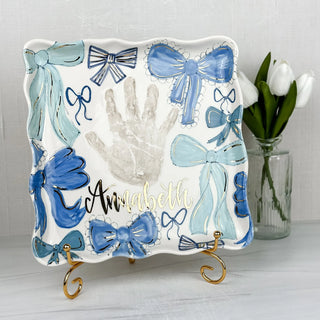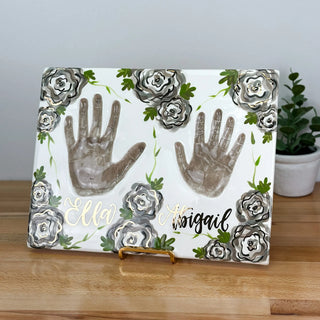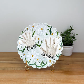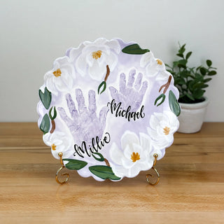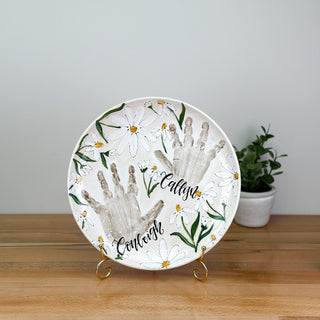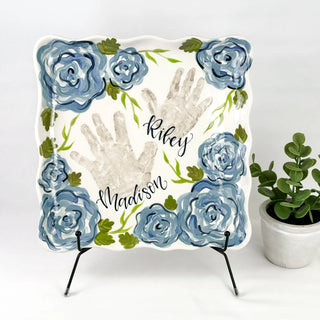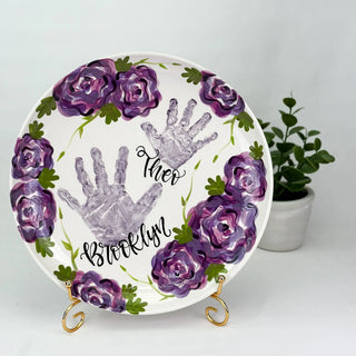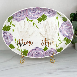 This unique Elegant Flower Petite Platter is the perfect way to add a personal and fun touch to your home décor. With your child's own handprint art, this petite platter is sure to brighten up any room. Each piece is hand painted and perfect for display.