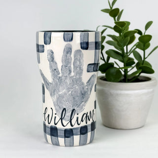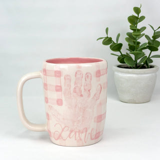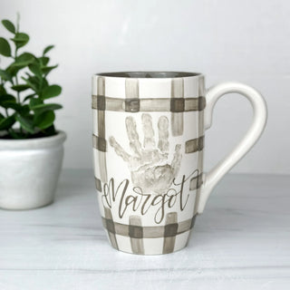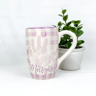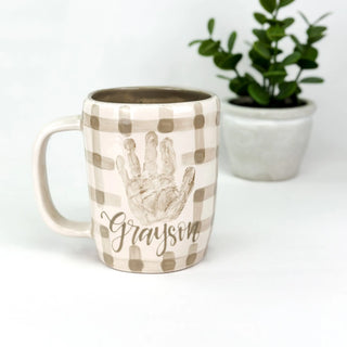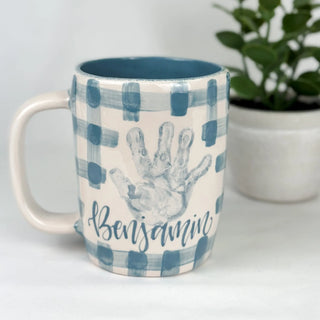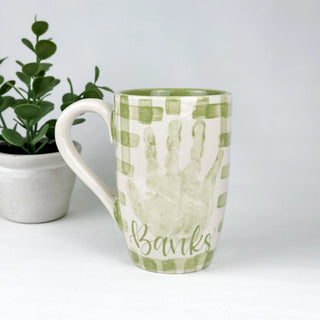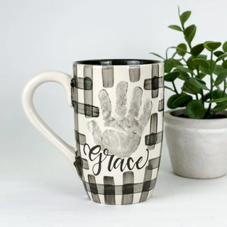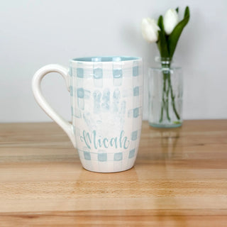 Capture precious memories with our Gingham Mug, featuring your child's handprint. This unique mug adds a personal touch to your daily routine. Cherish the memories as you sip your favorite drink.